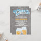 Salutations en script bulle de baseball lettering en bleu et blanc, avec des bières et coordination de l'image du bois à l'envers. Personnalisez le texte dans ce design amusant en ajoutant les années, le nom et les détails de la fête. Contactez le commerçant si vous avez besoin d'aide pour personnaliser ce design.