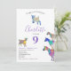 Collection d'illustrations colorées de chèvre d'aquarelle en rose vif, violet, bleu, orange, jaune et aqua. Un animal agricole mignon invitation à la fête du 9e anniversaire avec des chèvres et des chèvres debout sur des chèvres. Cette invitation amusante à la fête est facile à personnaliser pour créer une invitation unique à la fête adaptée aux enfants et aux amateurs de chèvre adulte. Colorful rose thème psychédélique chèvre illustrations originales par l'artiste Catherine Sweetman