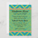 Célébrez le déménagement de votre enfant à l'université avec cette invitation de motif chevron bleu et vert avec garniture de pêche.