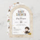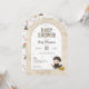 Celebrate your little wizard on the way with this enchanting Harry Potter baby shower invitation featuring Harry himself. This charming design includes an adorable illustration of Harry Potter in his Hogwarts robes, holding his wand and ready for magical adventures. The background is sprinkled with colorful stars for a touch of whimsy. Elegant and playful fonts beautifully display your custom details, including the honoree’s name, date, time, location, RSVP information, and gift registry. The unique arched shape of the invitation creates a storybook feel, while the back showcases a fun pattern of wizarding world icons such as spellbooks, potions, cauldrons, and magical creatures. Perfect for any Harry Potter fan, this invitation brings a spellbinding touch to your baby shower.