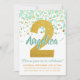 Un mignon et amusant Mint Green Gold Parties scintillant 2e anniversaire Confetti Cercle Dots Anniversaire Invitation pour une petite fille!