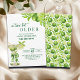 An elegant modern design featuring a watercolor illustration of a lime martini with green olives, tied with a green bow and a cute lime pattern on the back. Customize the details for a unique and chic Birthday Celebration.