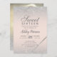 Typographie or chic rayures géométriques et parties scintillant argent ombre rose blush Sweet 16 anniversaire invitation fête. Ajoutez votre photo.L'arrière - plan rose pastel est entièrement personnalisable.