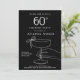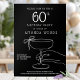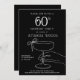 Carte d'anniversaire noire moderne et élégante avec un croquis en verre de champagne élégant. Parfait pour célébrer un jalon intemporel dans un style sophistiqué.