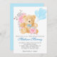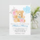 Baby shower à l'ours en peluche chic bleu pastel, rose pâle et gris. Une invitation digne d'un petit prince !