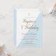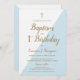 Invitation Chic Blue Gold Cross Baptême et 1er anniversaire