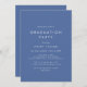 Cette invitation chic à la remise des diplômes bleu est parfaite pour une fête extérieure moderne. Le design simple présente une typographie classique bleue et blanche avec une touche boho rustique. Personnalisable dans n'importe quelle couleur.