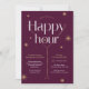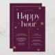 Créez des invitations élégantes et chic à l'heure du bonheur pour votre événement de réseautage, soirée d'appréciation ou fête d'entreprise à l'aide de ce design invitation bordeaux et or. Avec des effets de faux or sur un arrière - plan rouge foncé avec des polices serif élégantes, un verre de cocktail et des détails subtils brillants. Cet invitation d'événement d'entreprise peut être utilisé pour vos événements de team-building / moral des employés, réunions de réseautage, rencontres post-conférence et séminaires et plus encore!