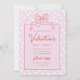 L'élégante et chic invitation à la Saint Valentin présente un joli imprimé de pois rétro et un arc en ruban tendance. Un écriture simple et une délicate impression violette et blanche est une belle toile de fond pour le style orange vif. Célébrez l'amour de la famille et des amis le jour de la Saint-Valentin avec une grande nourriture et amitié.