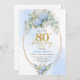 Invitation Chic Dusty Blue Floral Gold 80th Birthday Invite