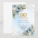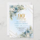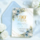 Invitation Chic Dusty Blue White Flowers 90th Birthday Invite