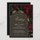 Elégant faire-part de mariage noir gothique rouge vert foncé moody floral. Donnez le ton pour une célébration romantique et sophistiquée avec cette élégante faire-part de mariage florale rouge et verte. Doté de fleurs rouges profondes et d'un feuillage verdoyant, ce design dégage un charme intemporel et une esthétique spectaculaire et humoristique. Parfait pour les couples qui aiment les couleurs riches, audacieuses et l'élégance classique, cette invitation mélange magnifiquement romantisme et raffinement, ce qui en fait la première impression parfaite pour votre journée spéciale.