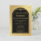 Une invitation classique à la bachelorette dorée et noire avec des confettis dorés.