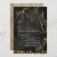 Cette carte d'invitation chic et élégante à la fête d'Halloween présente un arrière - plan noir avec des citrouilles et des feuilles en faux/faux or. L'envers présente un faux/faux arrière - plan en or avec des motifs géométriques en noir. Personnalisez-le selon vos besoins. Vous pouvez trouver des produits correspondants dans mon magasin.