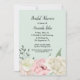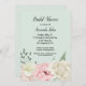 Elégante invitation à la douche nuptiale faite en vert, avec de magnifiques graphiques de fleurs blanches et roses décorant le fond de l'invitation. Personnalisez le texte noir pour votre événement mariage.