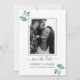 Elégant, simple mariage photo enregistrer l'invitation de la date avec le feuillage d'eucalyptus vert sur un arrière - plan blanc. Le dos de la carte est d'un bleu foncé chic. Customisez simplement cette élégante enregistrer la date avec votre photo fiançailles, les noms et la date mariage. Conçu exclusivement pour vous par Happy Dolphin Studio. Si vous avez besoin d'aide ou de produits correspondants, veuillez nous contacter à happydolphinstudio@outlook.com . Nous sommes heureux de vous aider à faire de votre mariage la plus belle journée!