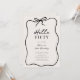 Make your birthday celebration one to remember with our stylish and modern 'Hello Fifty' Birthday Invitation. Featuring a dreamy cream background adorned with a playful black doodle frame and bow, this invitation also includes an elegant party template that can be tailored to your liking. Get ready to impress your guests with this customizable and chic invitation.