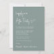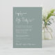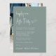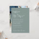 Elément vert sage minimaliste ou faire-part mariage privé et invitation de mariage avec "Happily Ever After Party" dans un script blanc chic, votre faire-part de mariage et invitation dans la typographie serif blanche classique et vos noms dans un script signature. Le verso présente votre photo superposée avec vos prénoms et dates de mariage et de réception.