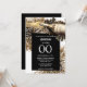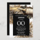 Une bouteille de vin mousseux de couleur dorée élégante, chic et design est entourée d'or, de feux d'artifice noirs et blancs et d'une incrustation noire sur laquelle des modèles pour votre formulation personnalisée apparaissent. Ce design est idéal pour une fête d'anniversaire ou une entreprise célébrant le nombre d'années qu'ils ont passé dans les affaires.