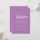 Faites de votre fête avec notre chic Lavender Purple Typography Graduation Party Invitation! Cette soirée d'invitation diplômée présente des peintures blanches et lavandes minimalistes, ajoutant une touche moderne chic.