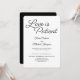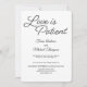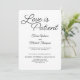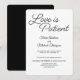 Chic, tendance, élégant, invitation de réception de mariage de couleur noir et blanc. Cette conception présente une écriture moderne pour les mots "L'amour est patient" typographie. Personnalisez cette annonce de mariage qui double comme une invitation à la réception de mariage avec les noms des mariés et tous les détails de la fête sur l'échange de vœux et la fête de mariage. Cette conception de mise en page moderne et élégante est facile à personnaliser.