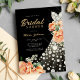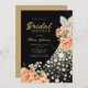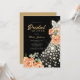 Robe de mariage dorée moderne élégante en ivoire blanc avec pêche beige aquarelle fleurs noir nuptiale invitation avec typographie dorée chic.