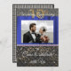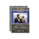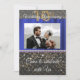 Une invitation chic noire et or avec de la soie bleue présente la photographie du couple.