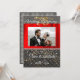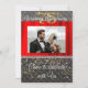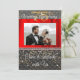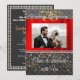 Une invitation chic noire et or avec de la soie rouge présente la photographie du couple.