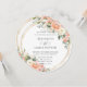 Cette faire-part de mariage chic est ornée d'un cadre de parties scintillant doré circulaire orné de beaux bouquets de pêche à l'aquarelle, d'ivoire, de fleurs roses et de feuillages verts. Personnalisez-le avec vos détails facilement et rapidement, il vous suffit d'appuyer sur le bouton customiser pour réorganiser et formater le style et l'emplacement du texte.