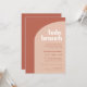 Chaque future maman mérite une célébration, alors assurez-vous de la douche avec tout votre amour, et quelques cadeaux amusants ! Minimaliste mais frappant : adoptez ce design typographique légèrement rétro et élégant pour votre papeterie de Baby shower, avec un design moderne en arc et des couleurs en terre cuite et orange brûlé. Texte, couleurs et arrière - plans entièrement personnalisables.