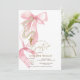 Invitation Chic Pink Bow Pearls Cross Baptism