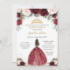 Invitation Chic Quinceañera Bourgogne Blush Floral Princesse