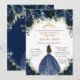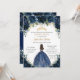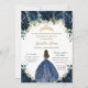 Invitation Chic Quinceañera Marine Blue Floral Princess Crown