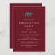 Cette invitation chic à la remise des diplômes de casquette de grade rouge est parfaite pour une fête extérieure moderne. Le design simple présente une typographie classique rouge et blanc bordeaux foncé avec un casquette d'aquarelle noir et or.
