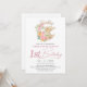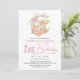 Invitation Chic rose floral lune fille Eléphant 1er anniversa