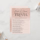 Jeu de trivia de mariage amusant pour les mariés avec ombre à paillettes rose gold sur fond rose blush pastel