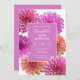 Faites honneur à une femme spéciale avec cette élégante et féminine invitation à la fête d'anniversaire. Ce design présente des fleurs de dahlia roses et oranges. Simple et moderne. Chaque texte est personnalisable selon vos besoins.