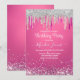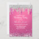 Cette invitation de fête d'anniversaire rose pâle argentée chic est parfaite pour tout âge avec une conception de paillettes et de strass qui coulent. Personnalisez-la avec vos propres informations avec de belles polices de monogramme.