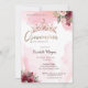 Parties scintillant élégante couronne et fleurs sur parties scintillant rose or ombre quinceañera invitation fête.