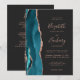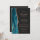 Le bord gauche de cette élégante faire-part de mariage moderne est doté d'une bordure turquoise en aquarelle ornée d'une parties scintillant en or rose. Le texte personnalisable combine écriture rose rose, cuivre et polices italiques sur un arrière - plan noir ardoise. L'envers offre de l'espace pour les détails du mariage sur un arrière - plan sombre solide, ainsi qu'un code QR que les invités peuvent scanner pour visiter votre site Web et RSVP, ce qui permet d'économiser le coût d'impression et d'envoi de cartes RSVP séparées.