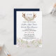 Design unique et élégant de Roses blanches roses blanches roses design. Il présente de magnifiques bois aquarelles avec bouquet de roses blanches et roses, au fond un bouquet avec les mêmes roses, le tout sur un arrière - plan blanc. Sur le dos un riche arrière - plan bleu marine, flèches avec les coeurs, les fleurs et les initiales de mariée et de mariée. Ajoutez vos informations. Pour les articles correspondants, veuillez visiter ma collection White Roses Antlers.