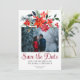 Invitation Chic rouge Noël Poinsettia Photo Enregistrer la da