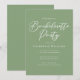 This elegant sage green bachelorette party invitation features classic white script for a bride who is going to have an outdoor event with her bridesmaids. A chic, minimalist bachelorette party invite for the fall.
