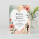 This elegant watercolor floral wedding invitation is perfect for a modern wedding. The romantic design features a sleek watercolor floral frame with a bride and groom illustration and black calligraphy on a white background.