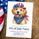 Invitation Chien 4 juillet Parti patriotique Golden Retriever