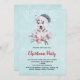 Invitation à la fête de Noël avec un tableau blanc et mignon d'aquarelle d'un chien husky portant un chapeau de Père Noël bleu.