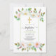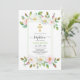 Invitation Chien sauvage blanc et rose roses vert floral Bapt