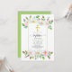 Chien sauvage blanc et rose rose vert floral fille Baptême invitation. Ce design présente des guirlandes d'aquarelle blanc et rose vif roses de chien avec des feuilles verts sur les parties supérieure et inférieure et votre texte dans un cadre vert. Le dos est de couleur verte.