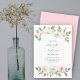 Faire-part de mariage floral rose chien blanc et rose roux. Ce joli design mariage présente des guirlandes de roses de chien blanc et rose vif avec des feuilles verts sur les parties supérieure et inférieure et votre texte dans un cadre rose. Le dos est de couleur rose.