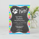 Invitation Chien, Woof; Neon Orange Rose Bleu Bleu Gris Vert